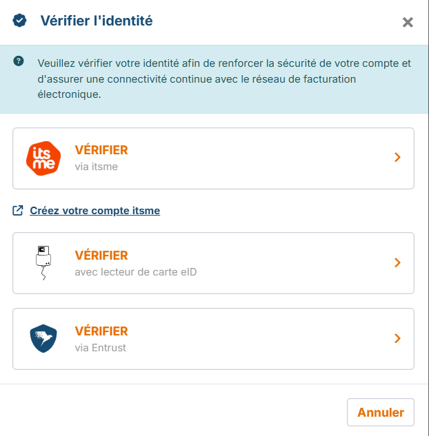 Pour utiliser Billit en toute sécurité, nous demandons de vérifier l’identité d’un représentant légal de votre entreprise. Il s’agit d’une exigence de Billit pour vous donner accès à des réseaux de facturation électronique sécurisés comme Peppol.