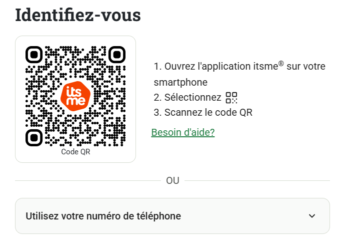 Cliquez ensuite sur le lien itsme et saisissez le numéro de téléphone du représentant légal, qui pourra ensuite s’identifier personnellement via itsme.